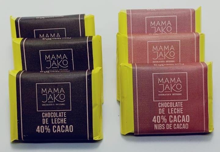 Barra de leche 40% cacao, la puedes encontrar sola o con granilla o nibs de cacao .
